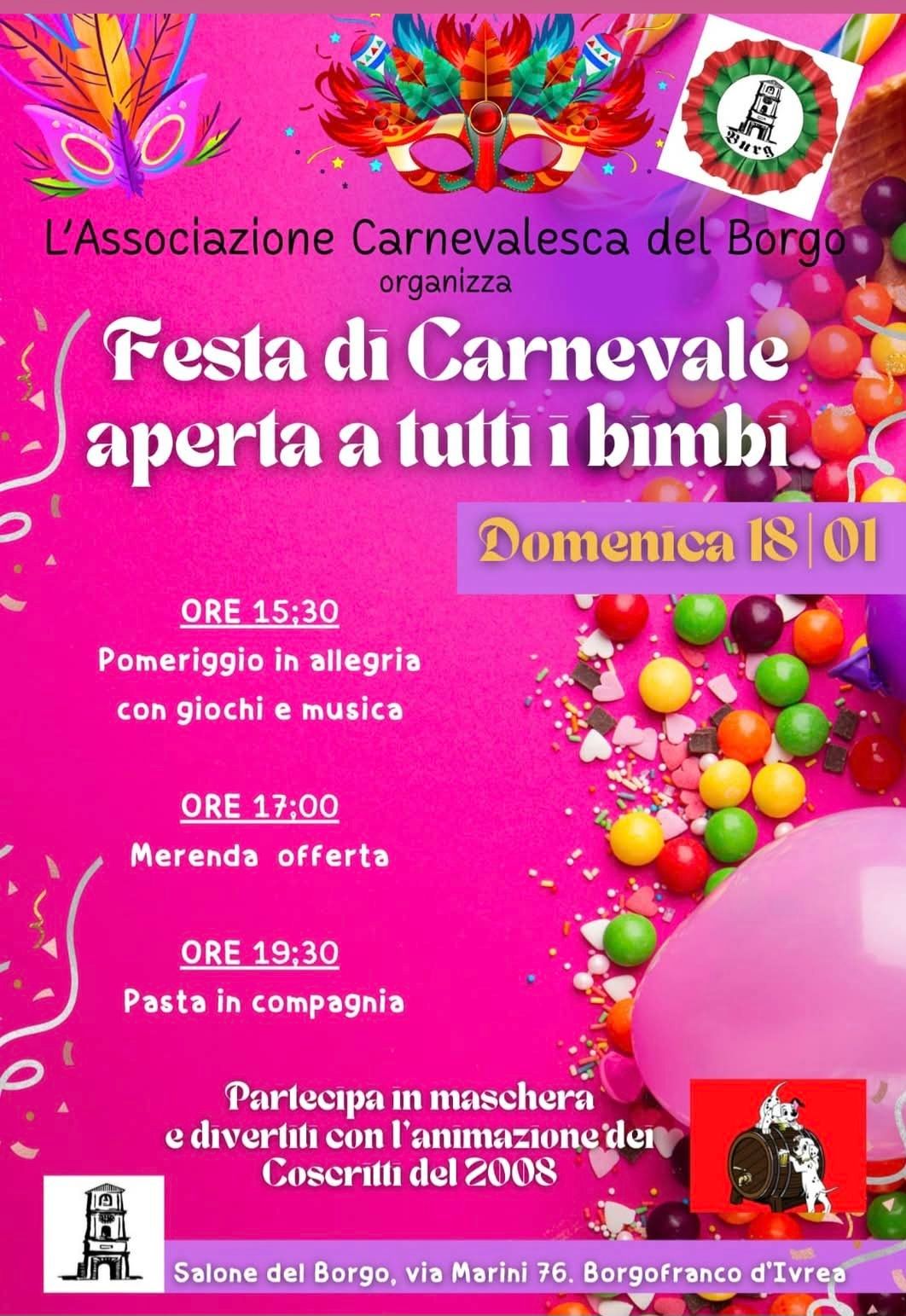 BORGOFRANCO D'IVREA - Festa di carnevale aperta a tutti i bimbi