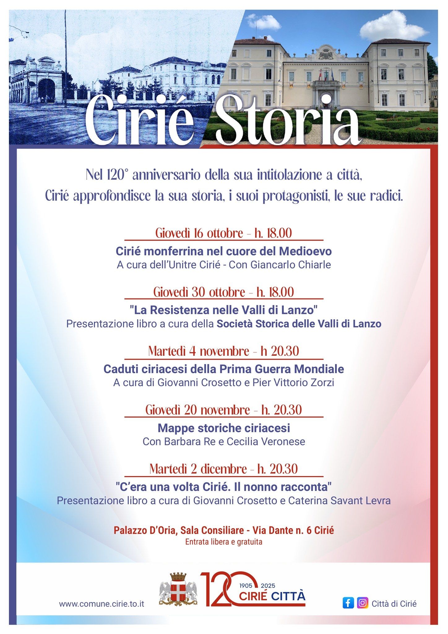 Il ciclo di approfondimenti sulla storia di Cirié, iniziati con la giornata dedicata al grande poeta Nino Costa dello scorso 2 ottobre