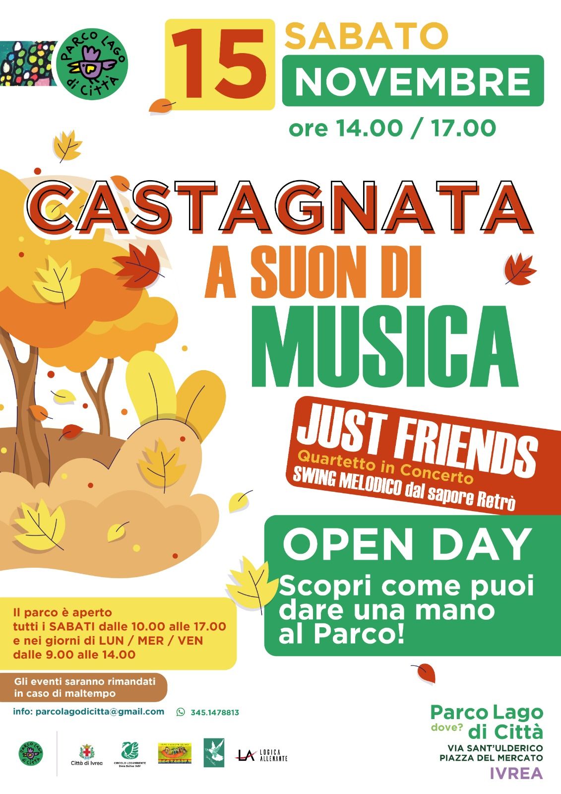 Sabato 15 novembre dalle 14:00 alle 17:00 castagnata al Parco lago di Città con concerto del quartetto "Just friends".