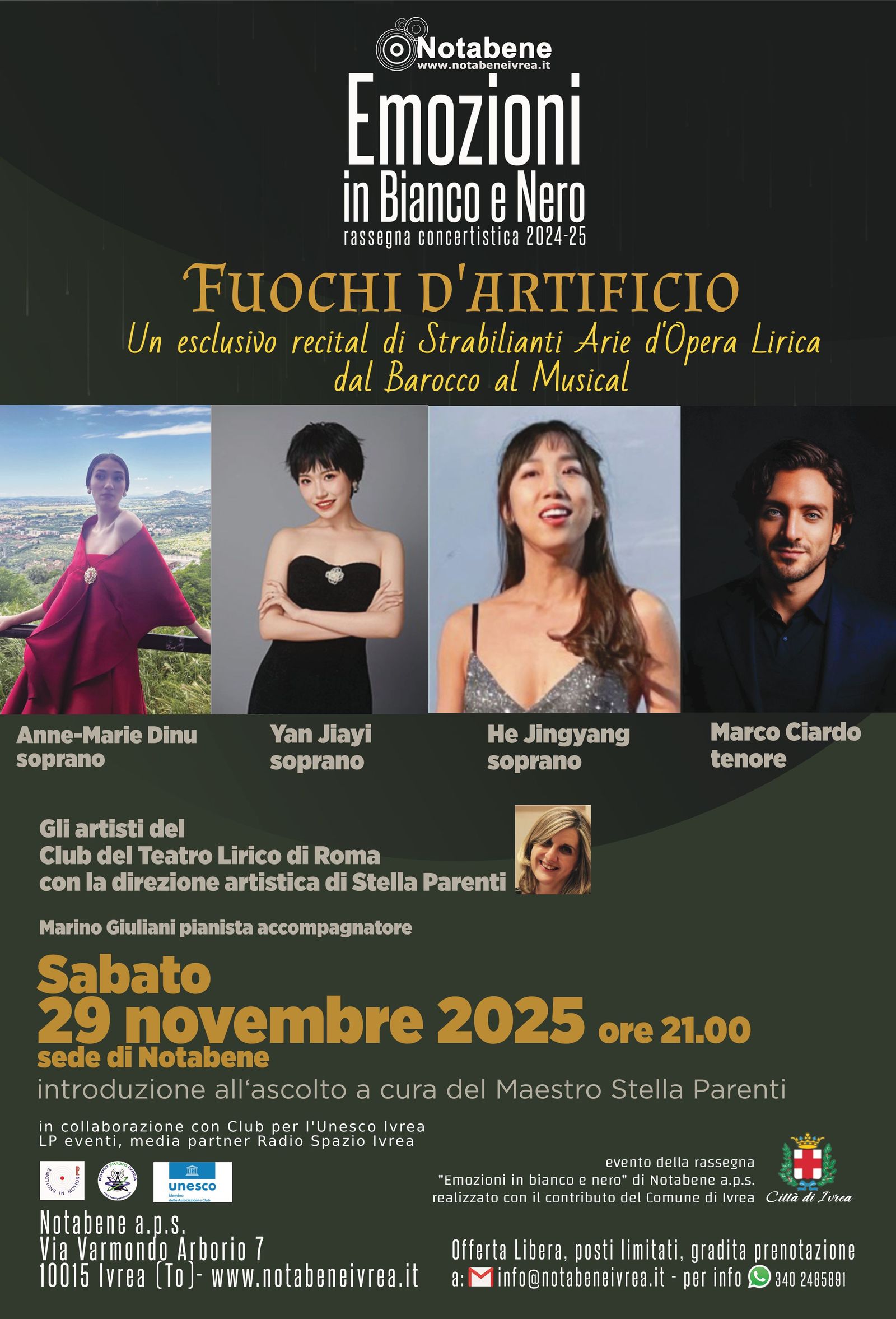Un’esplosione di vocalità, tecnica e passione. È questa la promessa di "Fuochi d'artificio! Strabilianti arie d'opera lirica dal Barocco al Musical", l’evento concerto organizzato dall'Associazione Notabene
