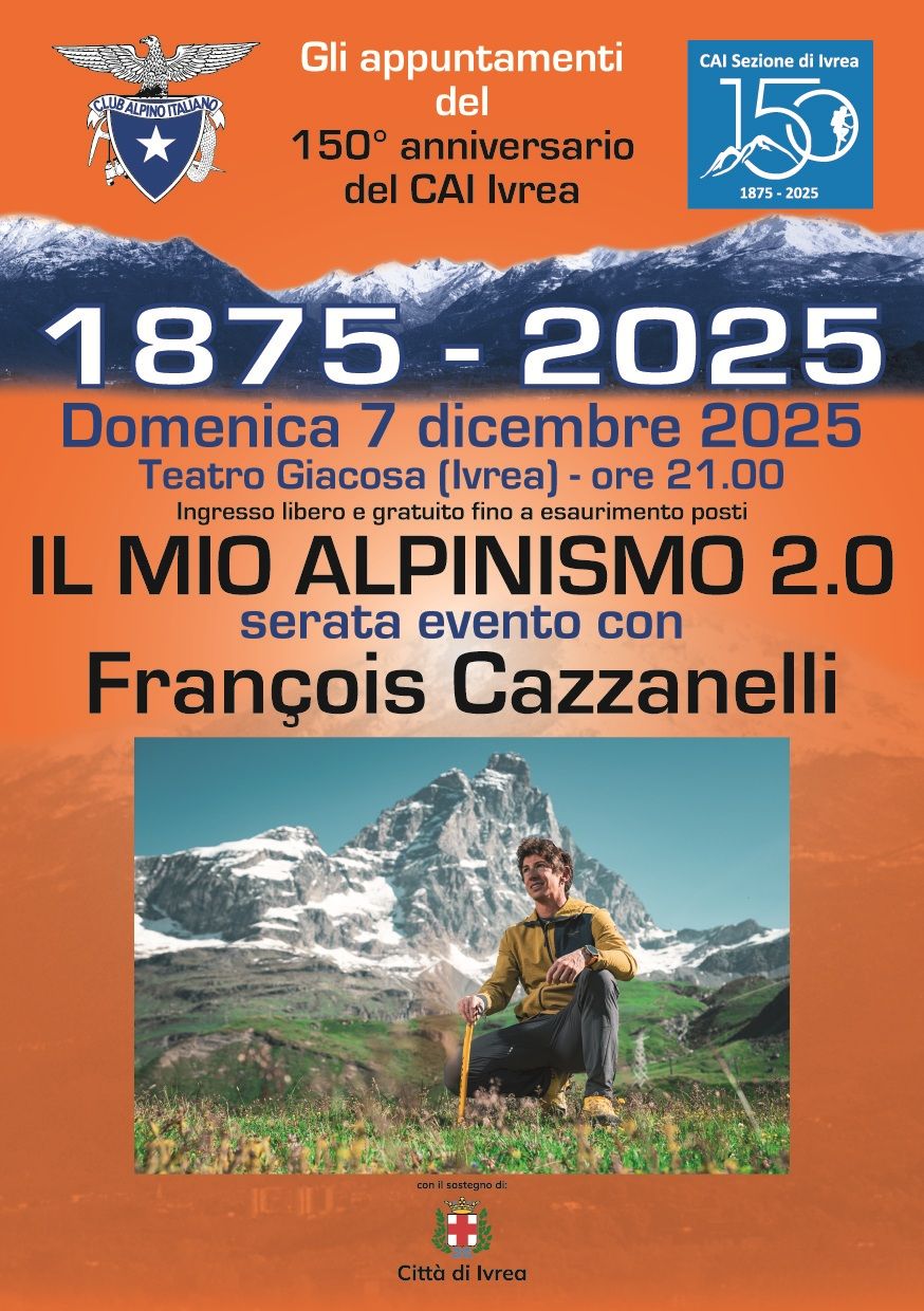 Per il 150°anniversario del CAI di Ivrea, nella splendida cornice del Teatro Giacosa, serata evento con François Cazzanelli personaggio di spicco del mondo della montagna