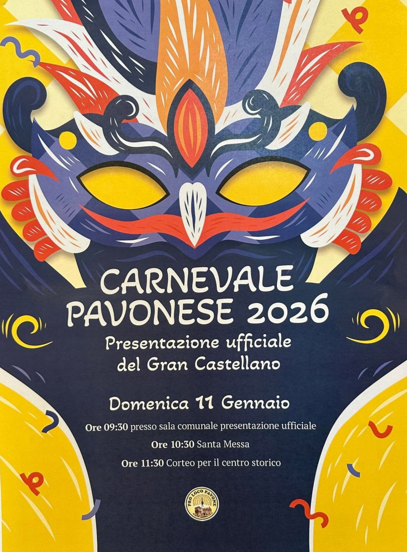 La Pro Loco Pavone, in collaborazione con l'Amministrazione Comunale, organizza in data 11 gennaio 2026 alle ore 9.30, presso la Sala Comunale: La presentazione ufficiale del Gran Castellano