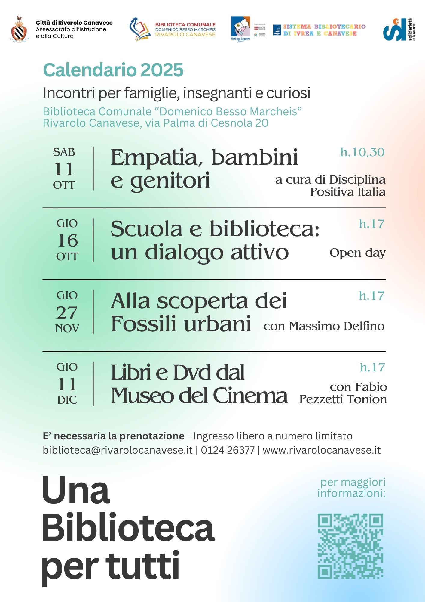 Quattro appuntamenti presso la Biblioteca comunale “Domenico Besso Marcheis” dedicati a famiglie, insegnanti, studenti e curiosi