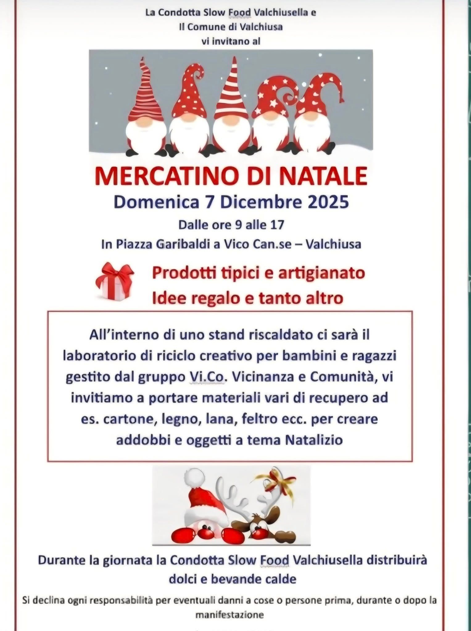 Mercatino di Natale a Vico Canavese con la condotta Slow Food della Valchiusella e il Comune di Valchiusa