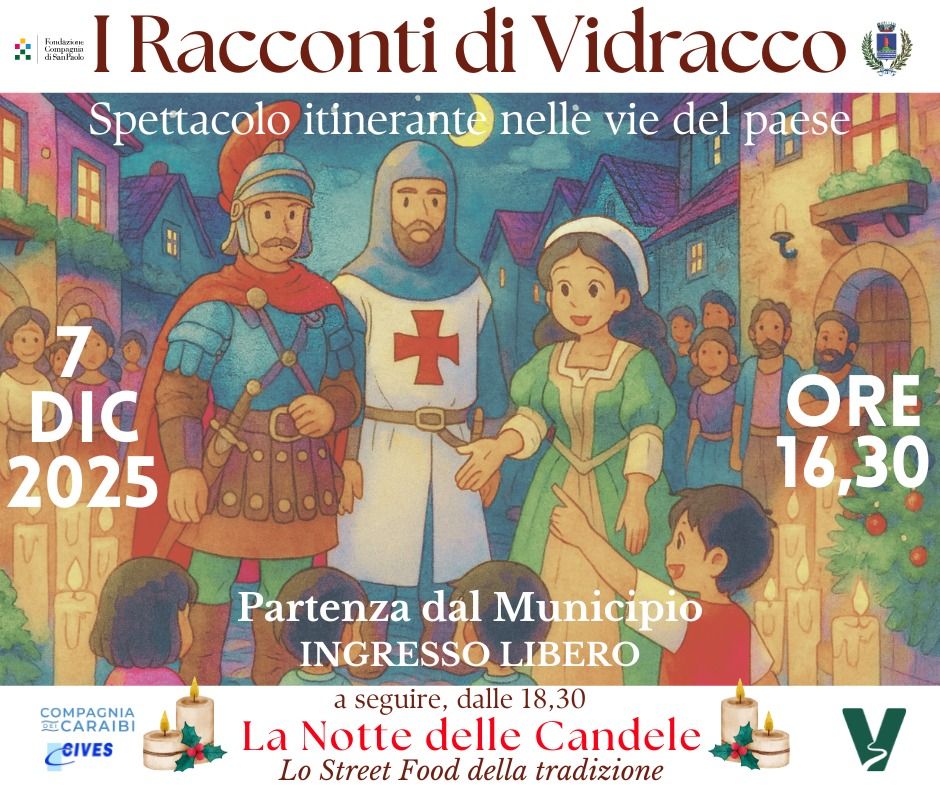 In occasione de “La Notte delle Candele”, si svolgerà uno spettacolo teatrale itinerante per le vie del paese, con il quale saranno messi in scena alcuni dei “Racconti di Vidracco”