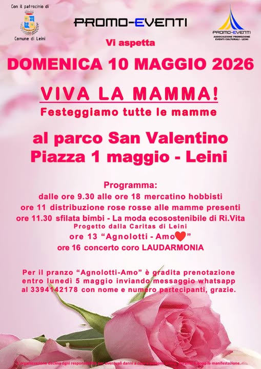 Il Comune di Leini, con il patrocinio di Promo-Eventi, organizza una giornata speciale dedicata a tutte le mamme. L'evento si terrà domenica 10 maggio 2026 presso il Parco San Valentino in Piazza 1 Maggio, Leini.